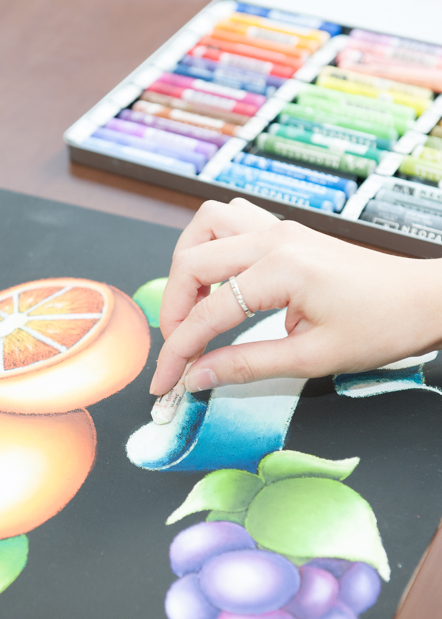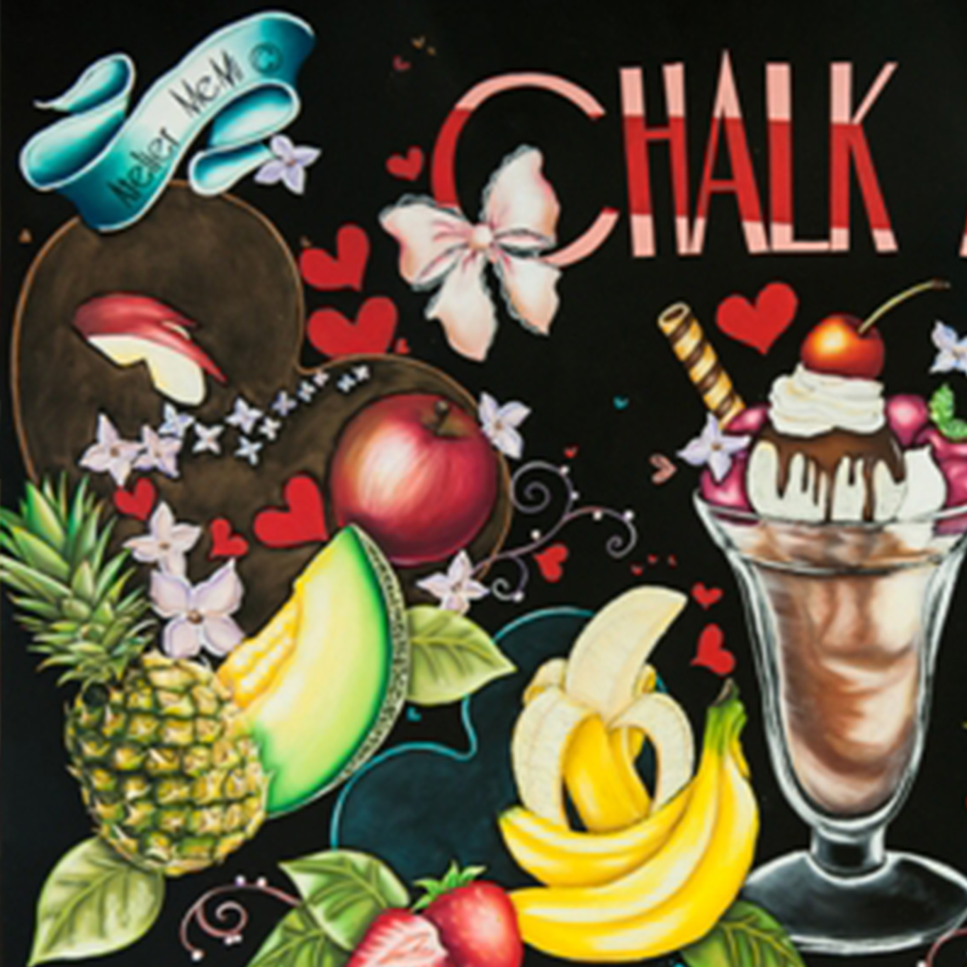 私たちが描いている「チョークアート」は、オースト ラリアが発祥のポップな看板アートです。木材にブラック塗装し、そこにオイルパステルを用いて自分の指で グラデーションを作って描いていきます。 筆などは一切使わず、全て自分の指で生み出す新しいアート。 カラフルでグラデーションが鮮やかで立体的なチョークアートの看板は、お店のメニューボード、 ウエルカムボード、表札等に最適です。 また、記念日ボードやインテリアボード等、アートとしてもお部屋に華を咲かせます。 全てが手作業で、ひとつひとつがオリジナルです。真心込めて制作しております。